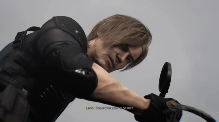 这些台词组成了里昂的性情,在9代的摩托对决中,他将邪派送下陡壁后,冷冷讪笑一句:这就是你不戴头盔的下场。