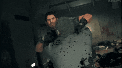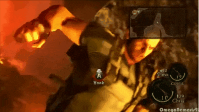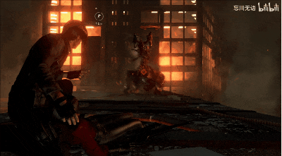 若是你问,为什么他要骑着摩托,坐电梯去摩天楼顶层和BOSS决战?谜底就在半小时前,克里斯为了保护瑞贝卡,被群尸围攻,堕入逆境。情急之下,里昂骑着摩托,带着印度电影慢动作,从楼梯井出现了。