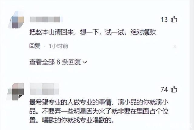 不要每个节目都穿插一些无须要的东说念主,否则只会让节目显得很拖累。 除此除外,还有网友说,如果能请到赵本山转头春晚就更好了。