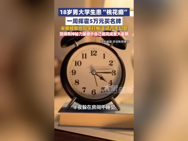 18岁男大学生患"桃花癫",一周摧残品5万元买名牌,深宵频繁给同学打电话还产生幻觉,合计有奥秘力量示意我方能完成紧要发明。