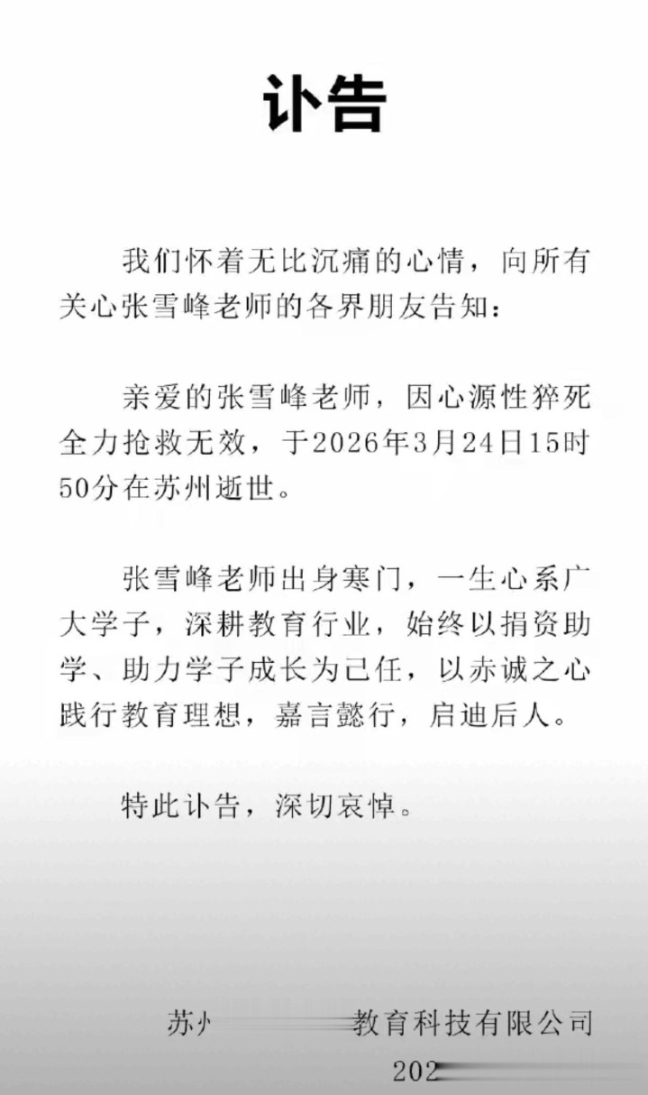 天博体育 钱再多有什么用, 41岁的张雪峰一霎离世, 给统共东说念主敲响了警钟